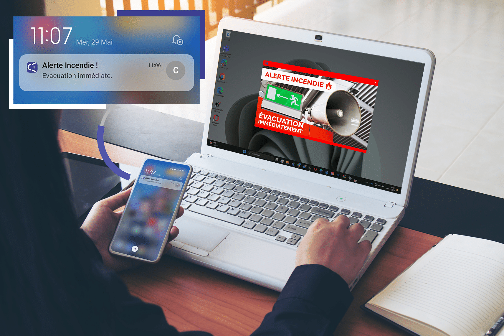 Blog Notification d’urgence : alerter efficacement en entreprise Notification d’urgence : alerter efficacement en entreprise 16 janvier 2026 Temps de lecture : 6 minutes Alors que les organisations publiques disposent de dispositifs conçus pour avertir rapidement la population en cas de danger majeur — à l’instar de FR-Alert — les entreprises peuvent elles aussi mettre en place des systèmes de notification d’urgence adaptés à leur environnement et à leurs besoins spécifiques. Le principe reste similaire : transmettre une information critique sans délai. Mais en entreprise, la finalité s’élargit : il ne s’agit pas seulement de signaler un incident, mais d’organiser efficacement la réponse interne, en tenant compte des sites, des équipes, des responsabilités et des priorités opérationnelles. Plan de l'article : Une notification pensée pour agir, pas seulement informer Usages de la notification d’urgence en entreprise Comment fonctionne un système de notification d’urgence ? Bien structurer sa communication d’urgence : technique et organisation Une notification pensée pour agir, pas seulement informer Nous l’avons dit, si les organisations publiques disposent de systèmes d’alerte pour prévenir la population en cas de crise, ces dispositifs restent généralement basiques : unicanals, uniformes et peu personnalisables. Les entreprises peuvent elles aussi se doter de systèmes de notification d’urgence, mais avec des solutions bien plus avancées que celles destinées à un usage grand public. Ces systèmes permettent : Diffusion multicanale : atteindre immédiatement les collaborateurs via PC, smartphones, tablettes ou écrans sur site, pour garantir que chaque message critique soit vu, quel que soit le support utilisé. Ciblage précis : envoyer des notifications uniquement aux bonnes équipes, services ou sites concernés par l’incident, évitant ainsi les messages superflus et renforçant la réactivité. Personnalisation des messages : adapter le contenu selon la criticité de l’incident, la localisation ou le profil des destinataires, pour que les informations soient claires et directement actionnables. Traçabilité et reporting : suivre la réception et la lecture des alertes, générer des logs et des statistiques, ce qui permet d’analyser l’efficacité des communications et de répondre à des obligations réglementaires. Coordination et continuité : centraliser la communication pour synchroniser la réponse des différents services, limiter les risques et assurer la continuité de l’activité même en situation critique. a) Tableau comparatif : Systèmes grands publics vs système de notification d’urgence en entreprise Critères Systèmes d’alerte aux populations Notification d’urgence en entreprise Objectif principal Emails, appels, messageries multiples Canal unique, centralisé et dédié Échelle de diffusion Variable, dépend des outils et des personnes Diffusion instantanée en quelques secondes Type de communication Approximatif (listes, transferts manuels) Précis : par service, site, rôle Personnalisation des messages Faible, risque de noyade de l’information Messages critiques mis en avant Réactivité attendue Quasi inexistante Accusés de réception, logs, historique Suivi et traçabilité Difficile sans accès aux outils classiques Messages visibles même sans PC Supports utilisés Principalement mobiles PC, smartphones, tablettes, écrans professionnels Finalité Protection des personnes Sécurité, continuité d’activité et gestion de crise Critère Systèmes d’alerte des organisations publiques Notification d’urgence en entreprise Usages de la notification d’urgence en entreprise La notification d’urgence intervient dès qu’une organisation doit transmettre une information critique, immédiate et fiable à ses collaborateurs. Elle couvre un large spectre de situations, des menaces directes pour la sécurité des personnes aux incidents plus opérationnels qui perturbent l’activité. L’objectif reste constant : alerter vite, mobiliser les bons services et guider les équipes jusqu’au retour à la normale. Dans le domaine de la sécurité, la notification d’urgence agit sur deux fronts. Pour la sécurité des personnes, elle permet de déclencher rapidement évacuations, confinements ou alertes intrusion, avec des messages instantanément visibles sur PC, smartphones ou écrans. Pour la sécurité IT, elle alerte immédiatement les équipes en cas d’intrusion ou d’accès non autorisé, protégeant ainsi les données sensibles et limitant la propagation des incidents. Elle s’avère également essentielle lors d’incidents techniques affectant l’informatique ou la production. Une coupure réseau, un application critique indisponible ou un dysfonctionnement machine peuvent paralyser un site. Une notification urgente informe immédiatement les équipes IT, les opérateurs ou les managers afin d'éviter l’immobilisation prolongée. La notification d’urgence sert aussi de canal pour gérer des situations sensibles du quotidien : risque sanitaire, accès restreint à une zone, intempéries impactant les équipes terrain, ou encore perturbation logistique. Dans ce cas, le message peut être ciblé et adapté au contexte local pour éviter la confusion. Exemples d’usages fréquents : Sécurité des personnes : évacuation, alerte intrusion, incident HSE. Sécurité IT : cyberattaque, intrusion, malware, accès non autorisé. Continuité IT : panne réseau, arrêt serveur, incident technique majeur Production & logistique : machine à l’arrêt, zone dangereuse, rupture d’approvisionnement. Quel que soit le scénario, la notification d’urgence agit comme un fil conducteur entre les services. Elle centralise l’information, la diffuse en quelques secondes et permet de synchroniser la réponse de l’entreprise sans dépendre de chaînes d’alerte manuelles ou dispers